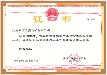 慶安雙潔天然食品有限公司認定為黑龍江省農業(yè)產業(yè)化重點龍頭企業(yè)